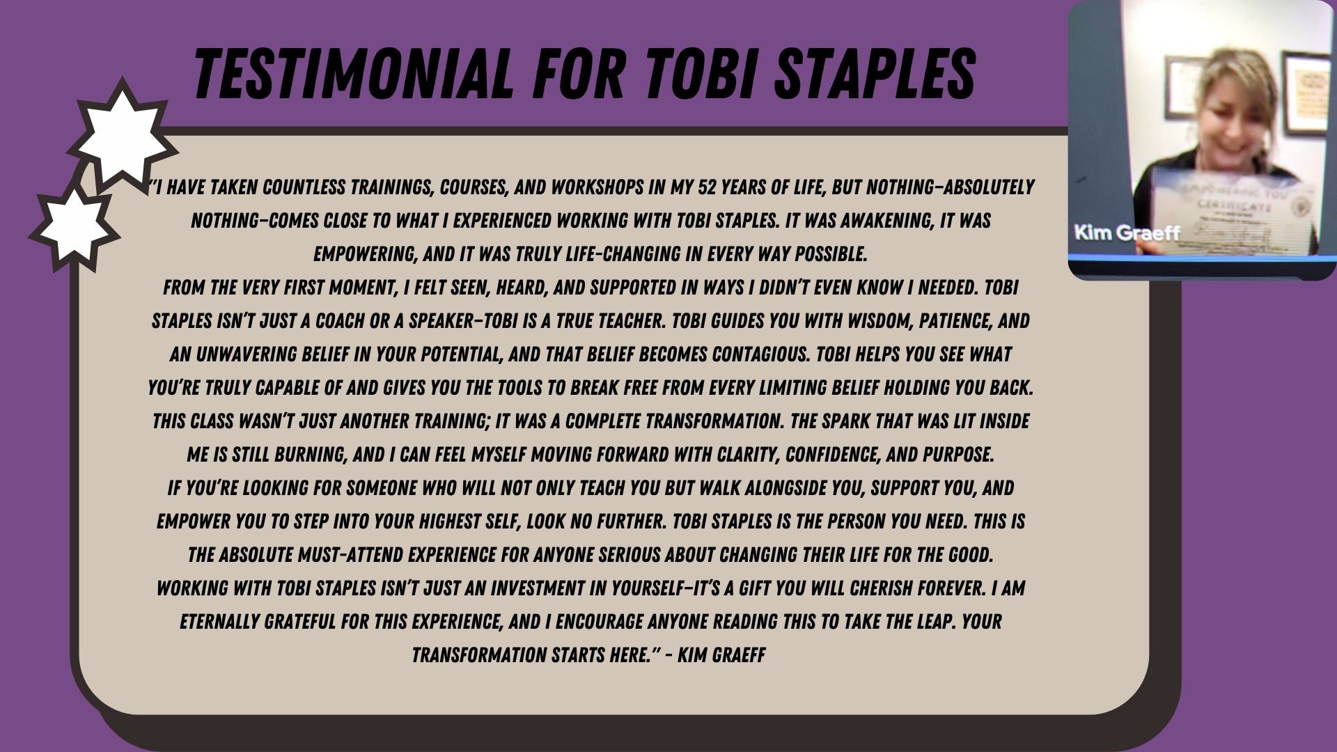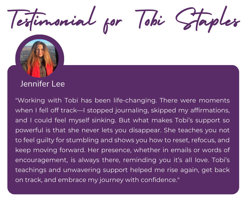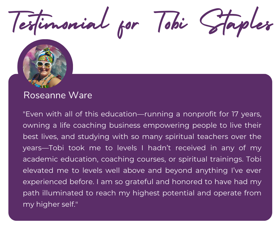 🔹 1-on-1 Private Laser-Focused Coaching with Me, Tobi Staples (Once Per Month, 30 min) – Personalized strategy sessions to blast through your limitations, realign your goals, and keep you accountable to your highest self.